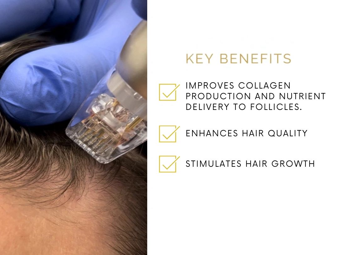 Sylfirm X combines microneedling with radio frequency to target multiple layers of the skin, stimulating collagen production and increasing nutrient delivery to hair follicles. This process promotes hair growth.