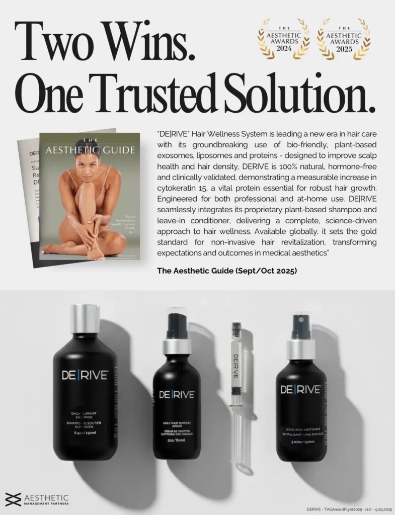 DERIVE is a hormone-free, 100% natural, plant-derived serum designed to combat thinning hair and promote fuller, thicker, and healthier hair. This innovative system combines in-office professional treatments with at-home care for ongoing results.