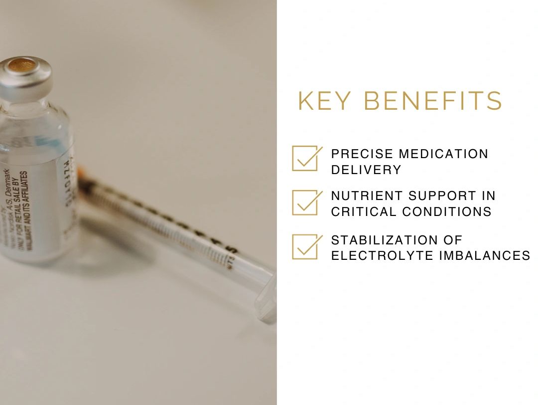 IV therapy is particularly valuable for rehydration, electrolyte balance restoration, and precise administration of medications that require quick and accurate delivery.